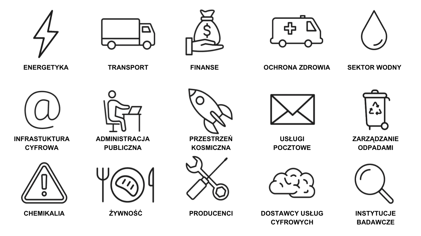 Odpowiednie sektory, regulowane dyrektywą NIS2 obejmują: